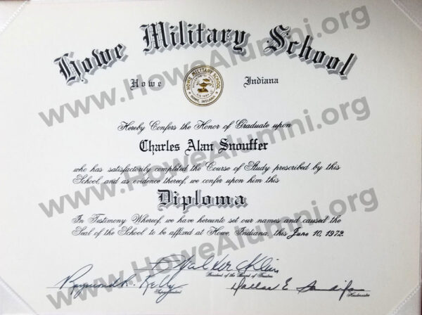 Charlie Snauffer ’72 is an excellent story teller. Here is his Howe diploma: